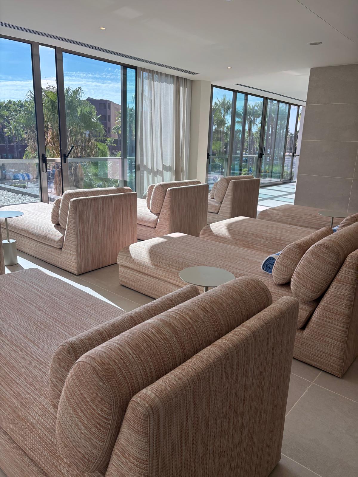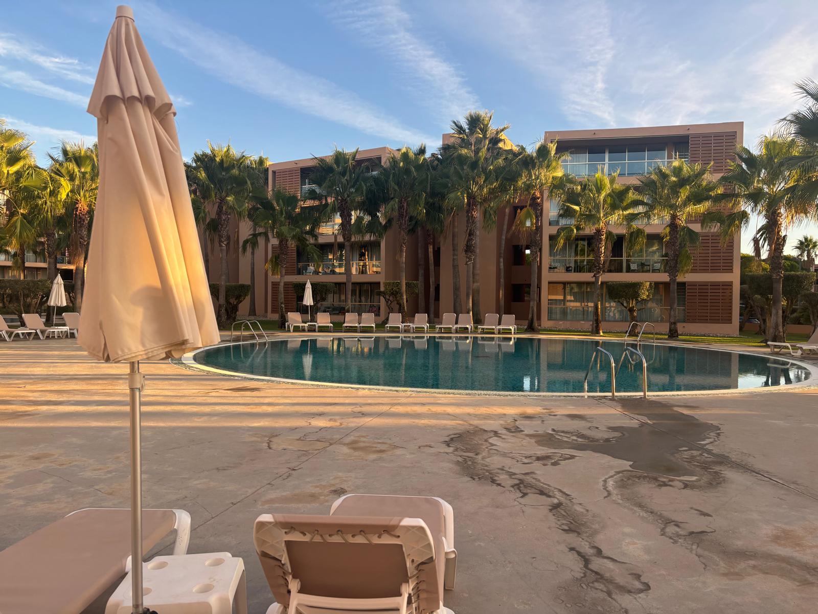 Estar no Meleo Beach Apartment significa desfrutar no interior de um condomínio privado, de uma variedade de comodidades premium incluindo 7 piscinas exteriores, snack bar (Kuaze na Praia) junto à piscina, jardins paisagísticos e um centro de fitness de elite contíguo (Welness360). Junto das piscinas há espreguiçadeiras e áreas sombreadas por arvores e guarda-sol, proporcionando um local perfeito para descontrair e aproveitar o sol com toda a tranquilidade.