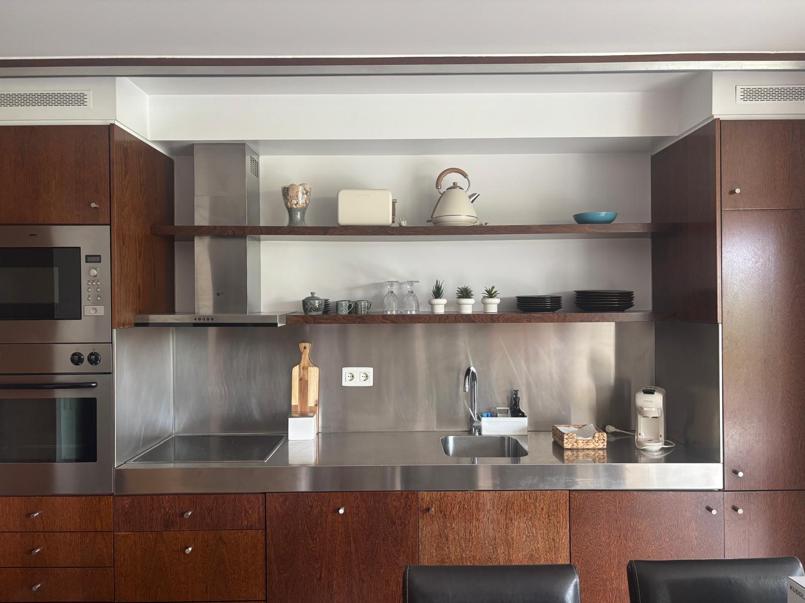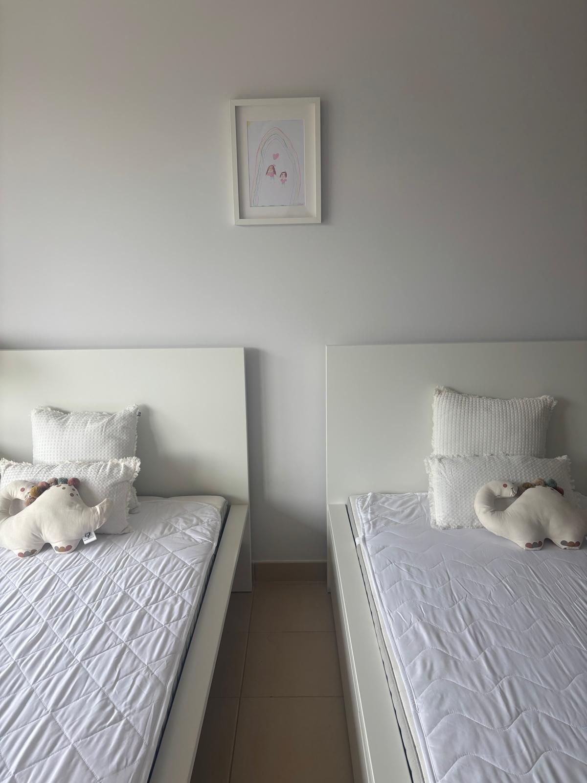 O nosso apartamento é comporto por 2 quartos (um deles suite), 2 casas de banho, 1 sala com cozinha equipada (estilo kitchenette) e rodeado por uma varanda que acompanha todo o apartamento.